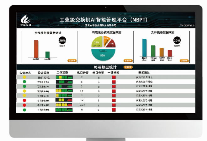 茅草屋的預(yù)算蓋出豪華別墅的效果,真正的低成本的前提下,實(shí)現(xiàn)安防傳輸?shù)目煽啃裕梢暬煽匦裕⑦m用于局域網(wǎng)技術(shù)為主的監(jiān)控場(chǎng)景,NBPT AI智能管理平臺(tái)有別于傳統(tǒng)SNMP,可實(shí)現(xiàn)前端一層管理工業(yè)交換機(jī)的狀態(tài)可視化,端口可視化,終端可視化,光纖鏈路可視化,流量寬帶可視化。