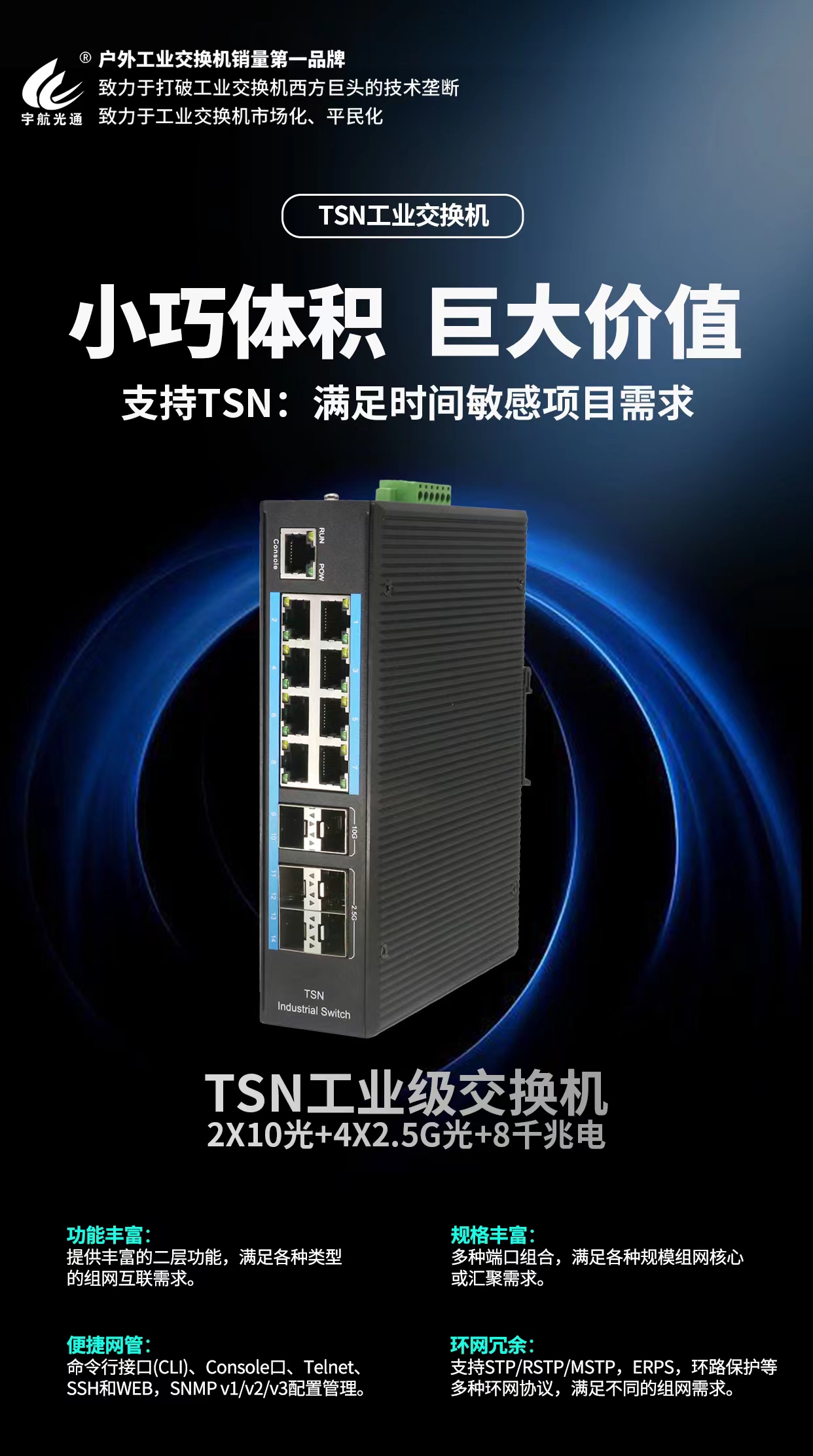 宇航工業(yè)交換機(jī)推出的新產(chǎn)品不僅滿足了工業(yè)通信領(lǐng)域的高標(biāo)準(zhǔn)需求,更在保證性能與穩(wěn)定性的同時,實現(xiàn)了多樣化的功能擴(kuò)展。這些產(chǎn)品的推出,無疑將為我國的工業(yè)通信發(fā)展注入新的活力,推動工業(yè)通信領(lǐng)域的持續(xù)進(jìn)步。作為工業(yè)通信領(lǐng)域的領(lǐng)軍企業(yè),宇航工業(yè)交換機(jī)將繼續(xù)秉持創(chuàng)新精神,助力我國工業(yè)通信領(lǐng)域?qū)崿F(xiàn)高質(zhì)量發(fā)展。