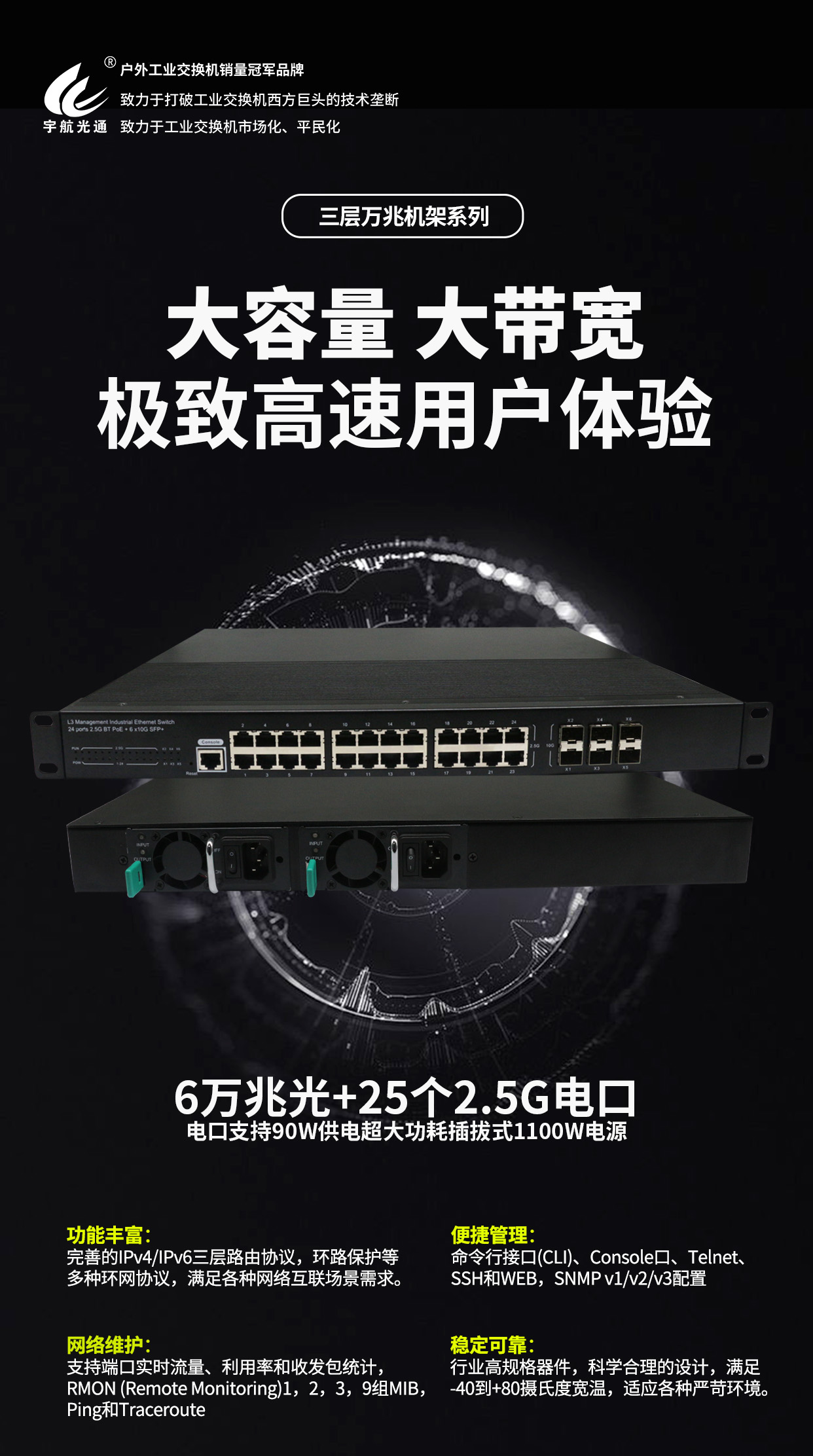 宇航,戶外工業(yè)交換機銷量冠軍品牌。宇航,致力于打破工業(yè)交換機西方巨頭的技術(shù)壟斷,致力于工業(yè)交換機市場化、平民化!
