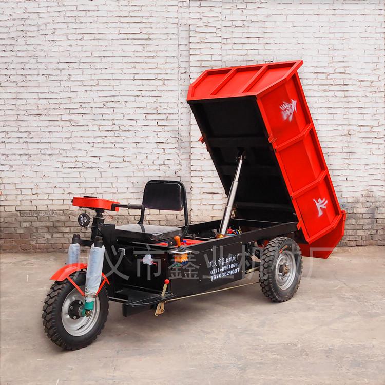 鑫業工地 電動翻斗車 電瓶耐用,白天工作晚上充電。工地電動翻斗車是一種綠色環保、節能型的電動交通工具。該車采用無級調速、自動倒車、智能充電、剎車斷電、過流欠壓保護等