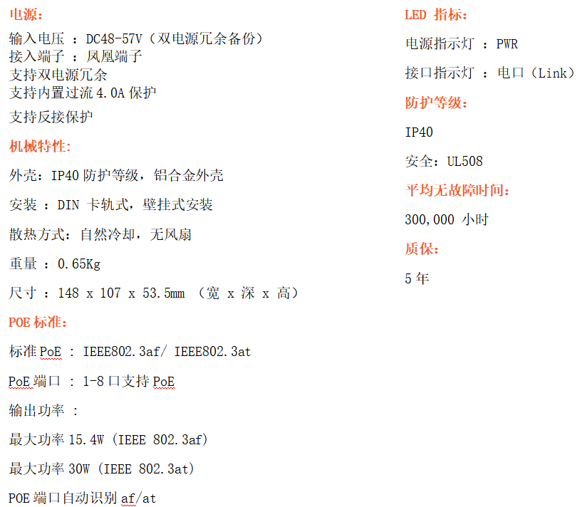 8路千兆電口工業級以太網交換機,支持8個10Base-T/100Base-TX POE電口。產品符合FCC、CE、ROHS標準。YH300-08FP交換機具有-40℃~85℃的工作溫度,具有超強的堅固度能適應各種嚴苛環境,也可以非常方便的安置在空間緊湊的控制箱中。導軌的安裝特性、寬溫操作及擁有IP40防護等級的外殼及LED指示燈,使YH300-08FP成為一個即插即用的工業級設備,為用戶的以太網設備聯網提供可靠、便捷的解決方案。