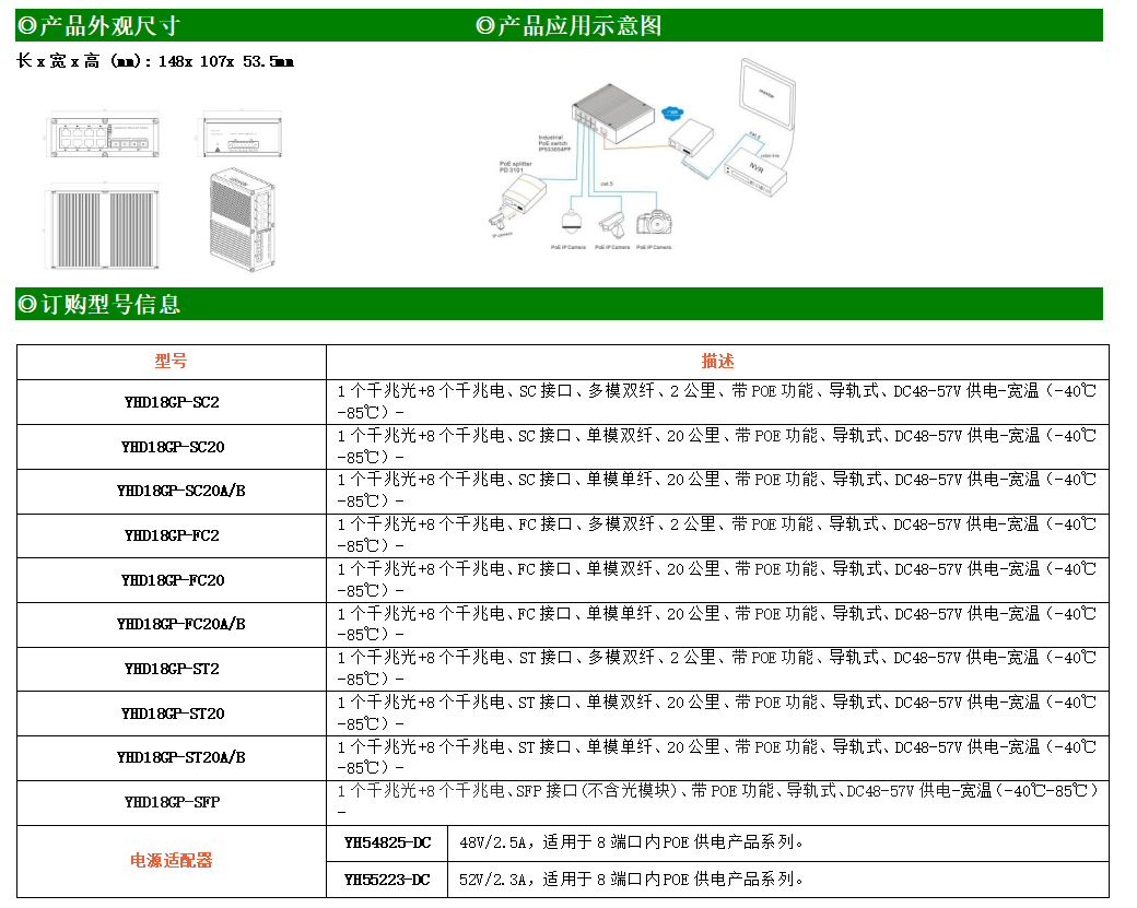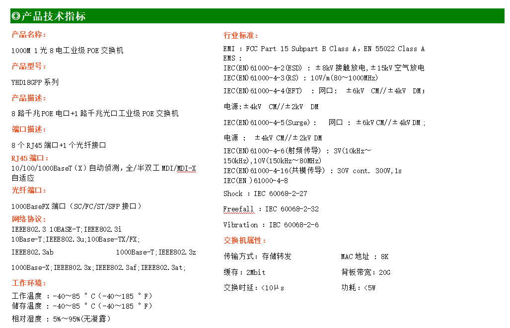8路千兆POE電口+1路千兆FX光口工業(yè)級以太網(wǎng)POE交換機,支持8個10/100/1000Base-TX電口和1個1000Base-X光口。產(chǎn)品符合FCC、CE、ROHS標(biāo)準。YH300-18GPP交換機具有-40℃~85℃的工作溫度,具有超強的堅固度能適應(yīng)各種嚴苛環(huán)境,也可以非常方便的安置在空間緊湊的控制箱中。導(dǎo)軌的安裝特性、寬溫操作及擁有IP40防護等級的外殼及LED指示燈,使YH300-18GPP成為一個即插即用的工業(yè)級設(shè)備,為用戶的以太網(wǎng)設(shè)備聯(lián)網(wǎng)提供可靠、便捷的解決方案。