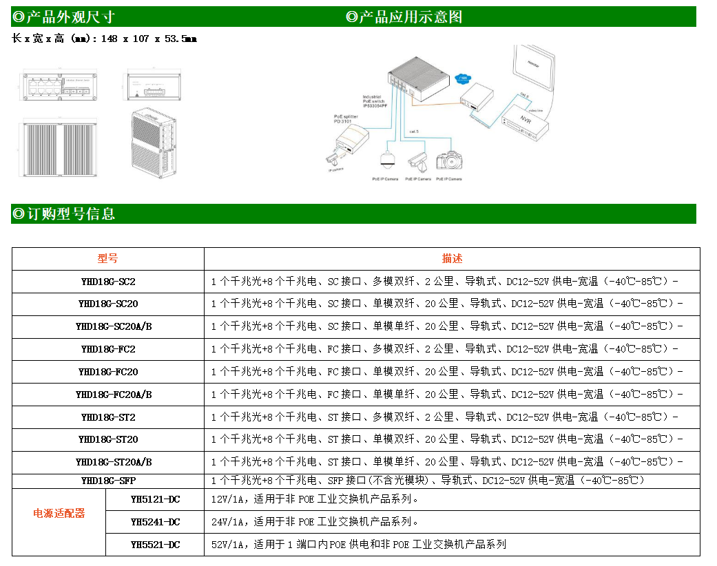 8路千兆電口+1路千兆FX光口工業級以太網交換機,支持8個100Base-T/1000Base-TX電口和1個1000Base-X光口。產品符合FCC、CE、ROHS標準。YH300-18G系列交換機具有-40℃~85℃的工作溫度,具有超強的堅固度能適應各種嚴苛環境,也可以非常方便的安置在空間緊湊的控制箱中。導軌的安裝特性、寬溫操作及擁有IP40防護等級的外殼及LED指示燈,使YH300-18G系列成為一個即插即用的工業級設備,為用戶的以太網設備聯網提供可靠、便捷的解決方案。