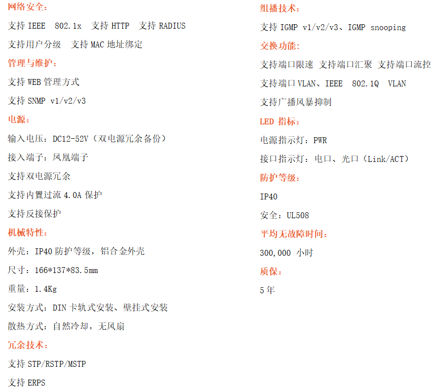 ●支持STP/RSTP/ERPS,SNMPv1/v2/v3,確保網絡安全