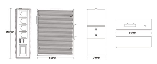 外殼:金屬材質(zhì) 安裝:DIN 卡軌式,壁掛式安裝 重量:0.36Kg 尺寸 :118 x 86 x 39mm (長(zhǎng) x 寬 x 高) |