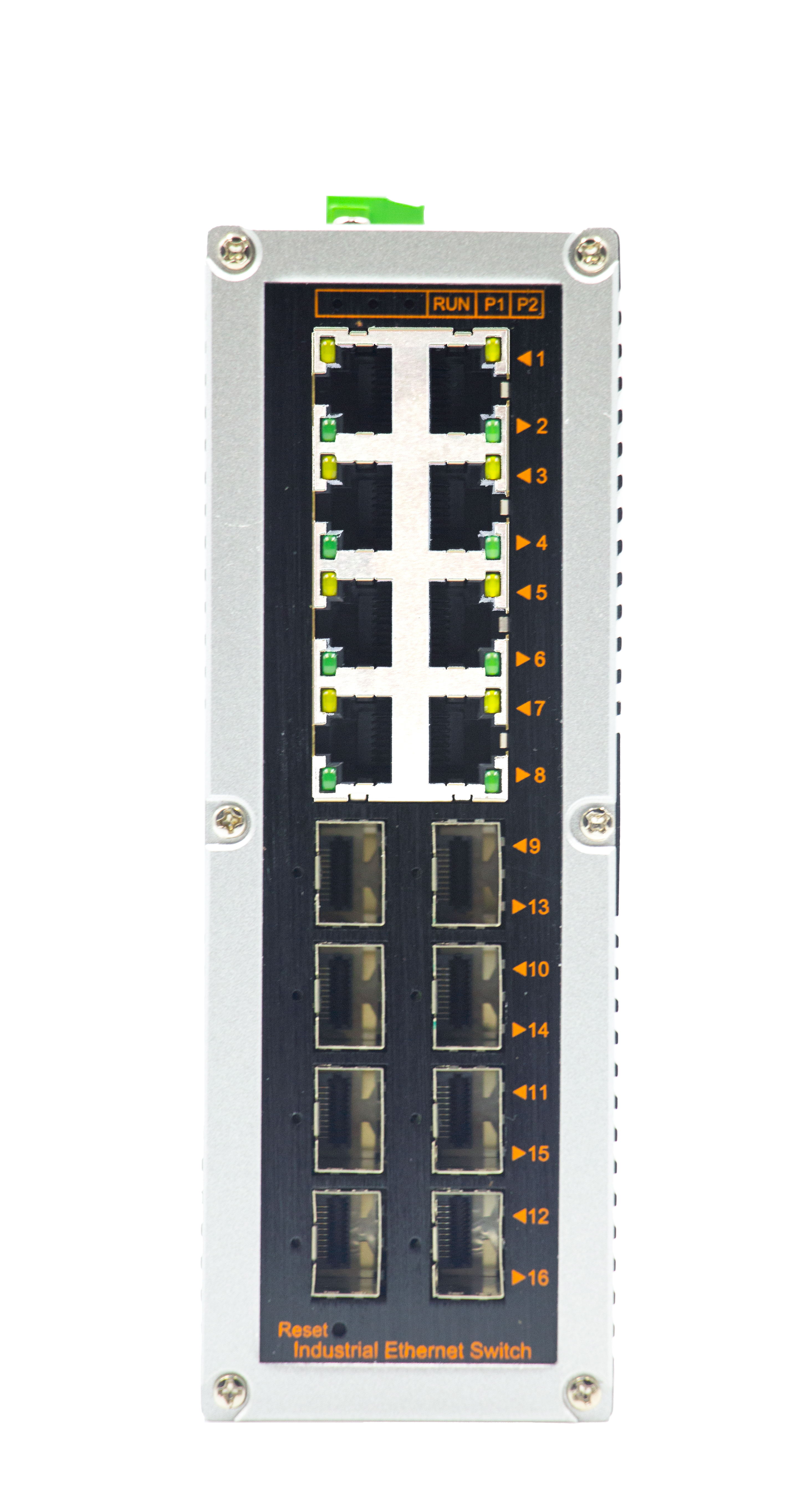 網管型千兆8光8電YH600-88GS-M-SFP工業以太網交換機,產品符合FCC、CE、ROHS標準。支持8個千兆光口和8個千兆電口,支持一路console口;支持工業現場所需的以太網二層協議,保證通信網絡的穩定性;該系列交換機采用低功耗、無風扇設計,確保無噪聲干擾,同時支持-40~85℃工作溫度和良好的EMC電磁兼容性能,保證在惡劣的工業環境中保持穩定的工作,為工廠自動化,智能交通,視頻監控等工業應用領域組建快速穩定的網絡終端接入網絡提供安全可靠的解決方案。護等級的外殼及 LED 指示燈,使之成為一個即插即用的工業級設備,為用戶的以太網設備聯網提供可靠、便捷的解決方案。