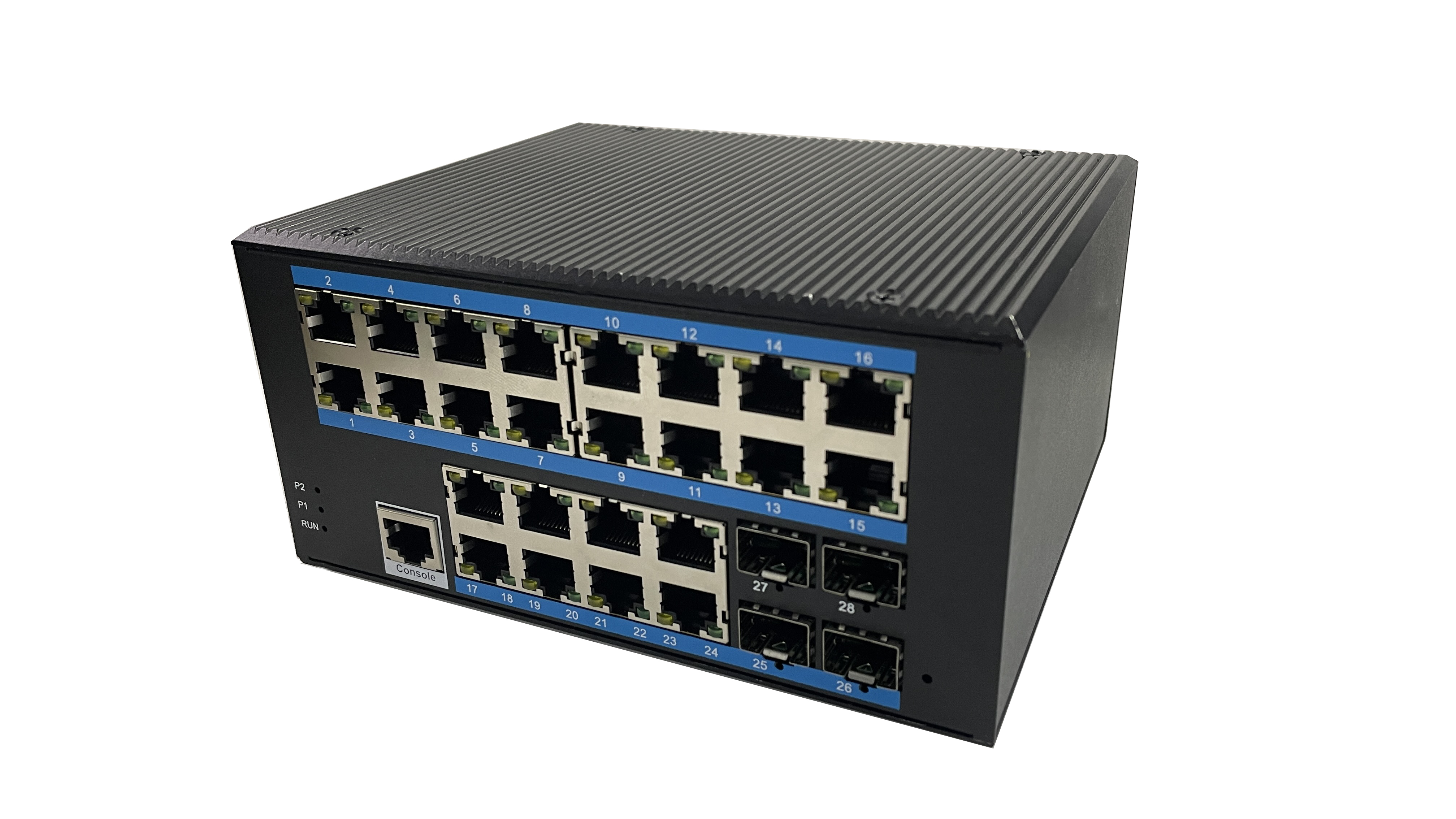 YH600-424GS-M-SFP是網管型工業以太網交換機,產品符合FCC、CE、RoHS標準。支持4個千兆光口和24個千兆電口;支持工業現場所需的以太網二層協議,保證通信網絡的穩定性;該系列交換機采用低功耗、無風扇設計,確保無噪聲干擾,同時支持-40~80℃工作溫度和良好的EMC電磁兼容性能,保證在惡劣的工業環境中保持穩定的工作,為工廠自動化,智能交通,視頻監控等工業應用領域組建快速穩定的網絡終端接入網絡提供安全可靠的解決方案。