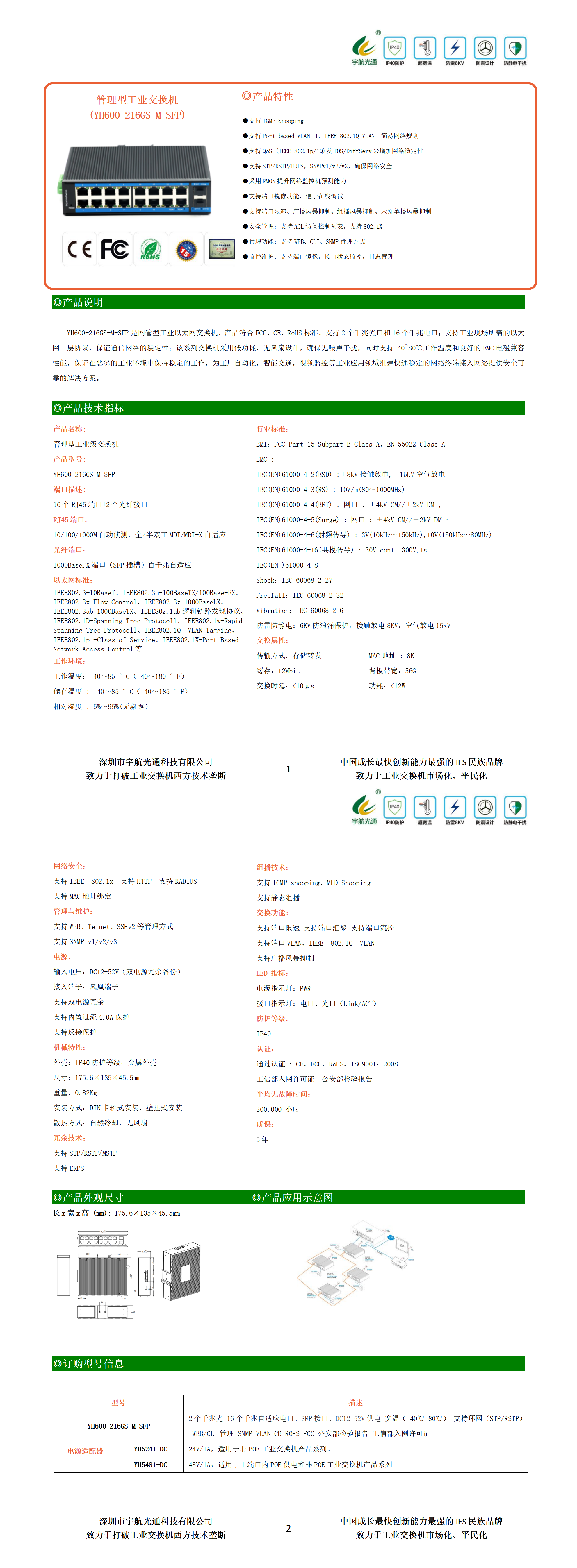 YH600-216GS-M-SFP是網(wǎng)管型工業(yè)以太網(wǎng)交換機,產(chǎn)品符合FCC、CE、RoHS標(biāo)準(zhǔn)。支持2個千兆光口和16個千兆電口;支持工業(yè)現(xiàn)場所需的以太網(wǎng)二層協(xié)議,保證通信網(wǎng)絡(luò)的穩(wěn)定性;該系列交換機采用低功耗、無風(fēng)扇設(shè)計,確保無噪聲干擾,同時支持-40~80℃工作溫度和良好的EMC電磁兼容性能,保證在惡劣的工業(yè)環(huán)境中保持穩(wěn)定的工作,為工廠自動化,智能交通,視頻監(jiān)控等工業(yè)應(yīng)用領(lǐng)域組建快速穩(wěn)定的網(wǎng)絡(luò)終端接入網(wǎng)絡(luò)提供安全可靠的解決方案。