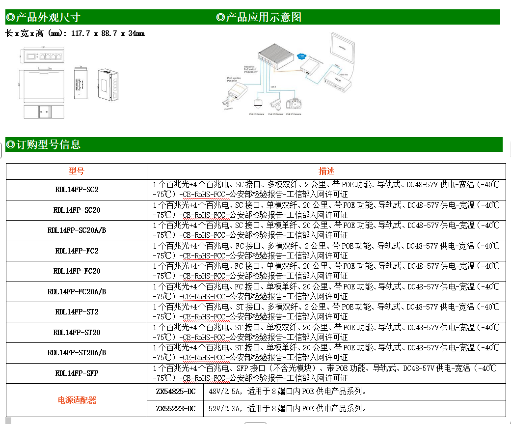 4路百兆POE電口+1路百兆SC光口工業(yè)級以太網(wǎng)POE交換機(jī),支持4個10/100Base-TX電口和1個100Base-X光口。產(chǎn)品符合FCC、CE、ROHS標(biāo)準(zhǔn)。RDL14FP系列交換機(jī)具有-40℃~75℃的工作溫度,具有超強的堅固度能適應(yīng)各種嚴(yán)苛環(huán)境,也可以非常方便的安置在空間緊湊的控制箱中。導(dǎo)軌的安裝特性、寬溫操作及擁有IP40防護(hù)等級的外殼及LED指示燈,使RDL14FP成為一個即插即用的工業(yè)級設(shè)備,為用戶的以太網(wǎng)設(shè)備聯(lián)網(wǎng)提供可靠、便捷的解決方案。