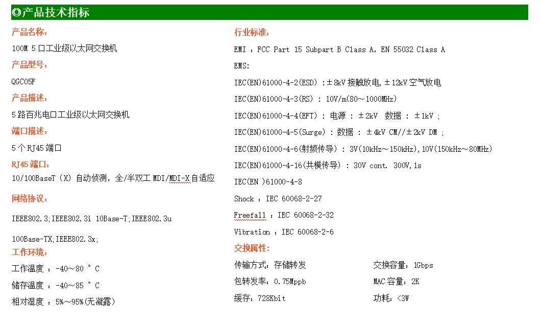 5路千兆電口工業級以太網交換機,支持5個10Base-T/100Base-TX/1000Base-TX電口。產品符合FCC、CE、ROHS標準。AF05G交換機具有-30℃~75℃的工作溫度,具有超強的堅固度能適應各種嚴苛環境,也可以非常方便的安置在空間緊湊的控制箱中。導軌的安裝特性、寬溫操作及擁有IP40防護等級的外殼及LED指示燈,使AF05G成為一個即插即用的工業級設備,為用戶的以太網設備聯網提供可靠、便捷的解決方案。