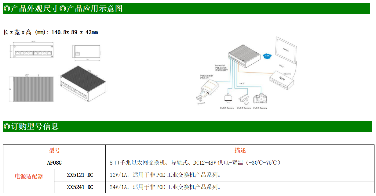 8路千兆電口工業(yè)級以太網(wǎng)交換機,支持8個10Base-T/100Base-T/1000Base-TX電口。產(chǎn)品符合FCC、CE、ROHS標(biāo)準(zhǔn)。AF08G交換機具有-30℃~75℃的工作溫度,具有超強的堅固度能適應(yīng)各種嚴(yán)苛環(huán)境,也可以非常方便的安置在空間緊湊的控制箱中。導(dǎo)軌的安裝特性、寬溫操作及擁有IP40防護等級的外殼及LED指示燈,使AF08G成為一個即插即用的工業(yè)級設(shè)備,為用戶的以太網(wǎng)設(shè)備聯(lián)網(wǎng)提供可靠、便捷的解決方案。