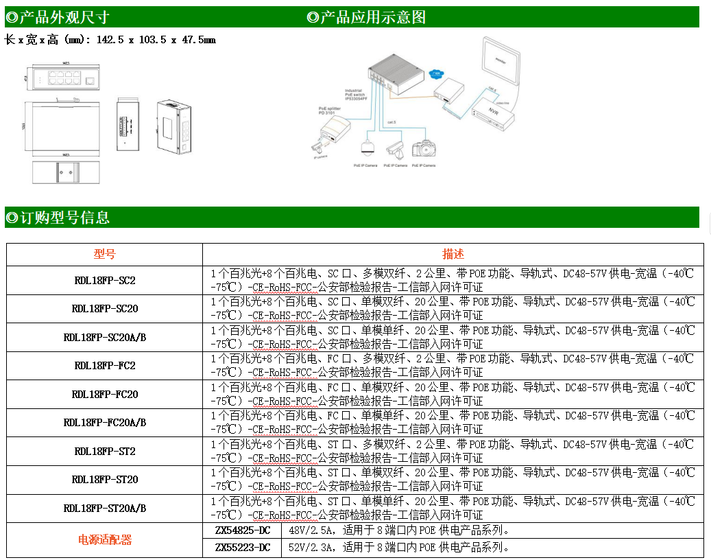 4路百兆POE電口+2路百兆FX光口工業(yè)級(jí)以太網(wǎng)交換機(jī),支持4個(gè)10Base-T/100Base-TX電口和2個(gè)100Base-X光口。產(chǎn)品符合FCC、CE、ROHS標(biāo)準(zhǔn)。RDL24FP系列交換機(jī)具有-40℃~75℃的工作溫度,具有超強(qiáng)的堅(jiān)固度能適應(yīng)各種嚴(yán)苛環(huán)境,也可以非常方便的安置在空間緊湊的控制箱中。導(dǎo)軌的安裝特性、寬溫操作及擁有IP40防護(hù)等級(jí)的外殼及LED指示燈,使RDL24FP成為一個(gè)即插即用的工業(yè)級(jí)設(shè)備,為用戶的以太網(wǎng)設(shè)備聯(lián)網(wǎng)提供可靠、便捷的解決方案。