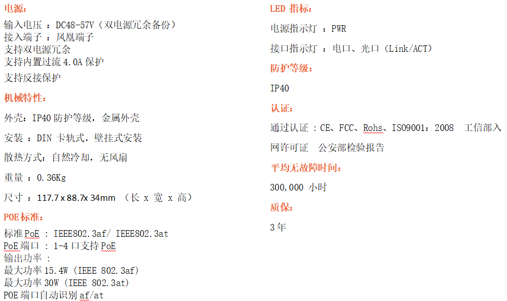 4路千兆POE電口+1路千兆FX光口工業級以太網POE交換機,支持4個10/100/1000Base-TX電口和1個1000Base-X光口。產品符合FCC、CE、ROHS標準。RDL14GP系列交換機具有-40℃~75℃的工作溫度,具有超強的堅固度能適應各種嚴苛環境,也可以非常方便的安置在空間緊湊的控制箱中。導軌的安裝特性、寬溫操作及擁有IP40防護等級的外殼及LED指示燈,使RDL14GP成為一個即插即用的工業級設備,為用戶的以太網設備聯網提供可靠、便捷的解決方案。
