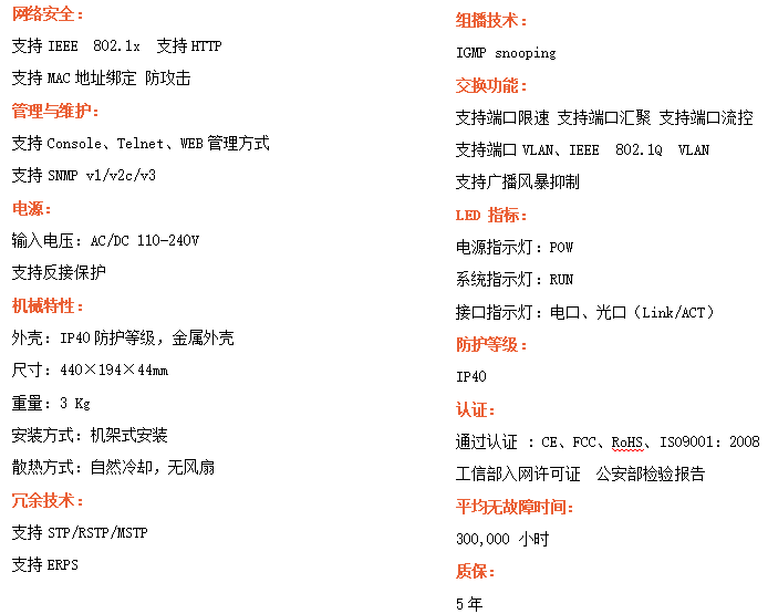 ●管理功能:支持WEB、CLI、SNMP管理方式