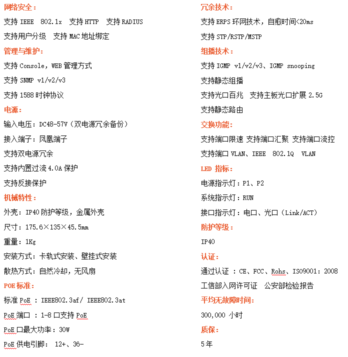 ●安全管理:支持ACL訪問控制列表,支持802.1X,支持用戶分級管理
