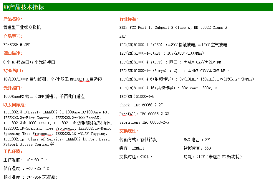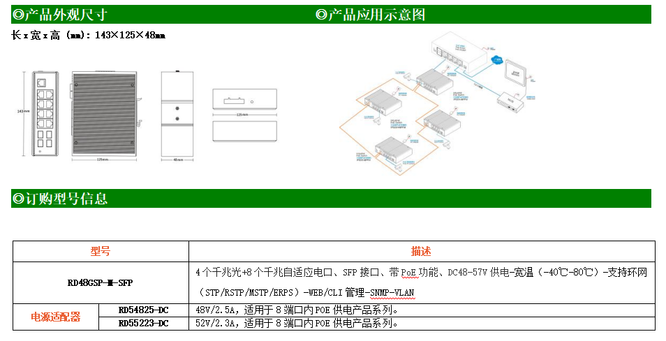 RD48GSP-M是網(wǎng)管型工業(yè)級以太網(wǎng)PoE交換機(jī),提供4個千兆光口和8個千兆電口支持8路PoE,支持工業(yè)現(xiàn)場所需的以太網(wǎng)二層協(xié)議,保證通信網(wǎng)絡(luò)的穩(wěn)定性;該系列交換機(jī)采用低功耗、無風(fēng)扇設(shè)計,確保無噪聲干擾,同時支持-40~80℃工作溫度和良好的EMC電磁兼容性能,保證在惡劣的工業(yè)環(huán)境中保持穩(wěn)定的工作,為工廠自動化,智能交通,視頻監(jiān)控等工業(yè)應(yīng)用領(lǐng)域組建快速穩(wěn)定的網(wǎng)絡(luò)終端接入網(wǎng)絡(luò)提供安全可靠的解決方案。