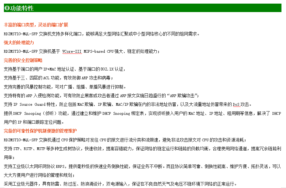 ●網(wǎng)絡(luò)冗余:支持STP/RSTP/MSTP,支持ERPS