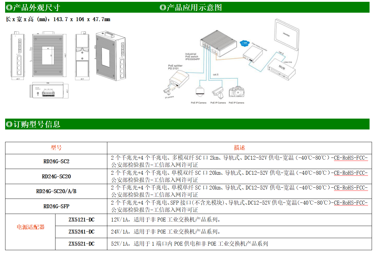 4路千兆電口+2路千兆FX光口工業(yè)級以太網(wǎng)交換機(jī),支持4個100Base-T/1000Base-TX電口和2個1000Base-X光口。產(chǎn)品符合FCC、CE、ROHS標(biāo)準(zhǔn)。RD24G交換機(jī)具有-40℃~80℃的工作溫度,具有超強(qiáng)的堅固度能適應(yīng)各種嚴(yán)苛環(huán)境,也可以非常方便的安置在空間緊湊的控制箱中。導(dǎo)軌的安裝特性、寬溫操作及擁有IP40防護(hù)等級的外殼及LED指示燈,使RD24G成為一個即插即用的工業(yè)級設(shè)備,為用戶的以太網(wǎng)設(shè)備聯(lián)網(wǎng)提供可靠、便捷的解決方案。