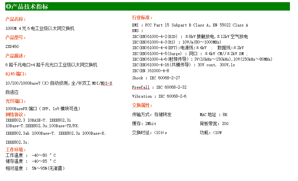 6路千兆電口+4路千兆光口工業(yè)級以太網(wǎng)交換機,支持6個10/100/1000Base-T(x)電口和4個1000Base-X光口。產(chǎn)品符合FCC、CE、ROHS標準。RD46G交換機具有-40℃~80℃的工作溫度,具有超強的堅固度能適應(yīng)各種嚴苛環(huán)境,也可以非常方便的安置在空間緊湊的控制箱中。導(dǎo)軌的安裝特性、寬溫操作及擁有IP40防護等級的外殼及LED指示燈,使RD46G成為一個即插即用的工業(yè)級設(shè)備,為用戶的以太網(wǎng)設(shè)備聯(lián)網(wǎng)提供可靠、便捷的解決方案。
