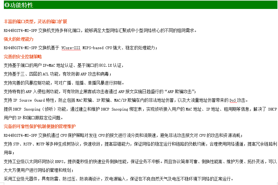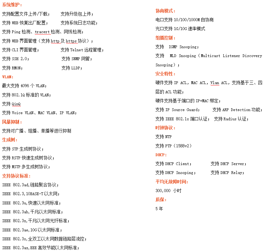 ●網(wǎng)絡(luò)冗余:支持STP/RSTP/MSTP,支持ERPS(自愈時(shí)間<20ms)