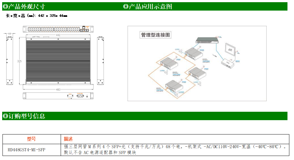 RD448GST4-MI-SFP交換機(jī)是我司推出的一款萬兆三層交換機(jī),配備4個萬兆SFP+光口和48個10/100/1000M Base-T自適應(yīng)電口,具備先進(jìn)的硬件處理能力和最豐富的業(yè)務(wù)特性。支持IPv4/IPv6 硬件雙棧及線速轉(zhuǎn)發(fā),使客戶能夠從容應(yīng)對即將帶來的IPv6 時(shí)代其提供高容量的交換能力。RD448GST4-MI-SFP交換機(jī)具有-40℃~80℃的工作溫度,具有超強(qiáng)的堅(jiān)固度能適應(yīng)各種嚴(yán)苛環(huán)境,使RD448GST4-MI-SFP的交換機(jī)成為一個即插即用的工業(yè)級設(shè)備,為用戶的以太網(wǎng)設(shè)備聯(lián)網(wǎng)提供可靠、便捷的解決方案。