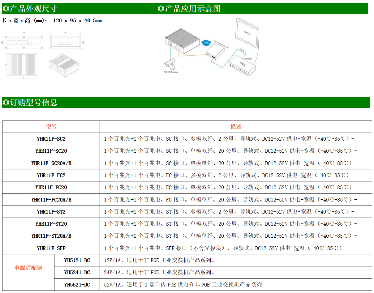 1路百兆電口+1路百兆FX光口工業級以太網交換機,支持1個10Base-T/100Base-TX電口和1個100Base-X光口。產品符合FCC、CE、ROHS標準。YH200-11F系列交換機具有-40℃~85℃的工作溫度,具有超強的堅固度能適應各種嚴苛環境,也可以非常方便的安置在空間緊湊的控制箱中。導軌的安裝特性、寬溫操作及擁有IP40防護等級的外殼及LED指示燈,使YH200-11F成為一個即插即用的工業級設備,為用戶的以太網設備聯網提供可靠、便捷的解決方案。